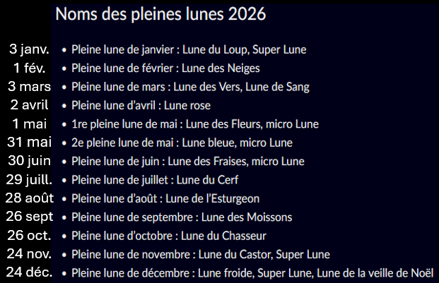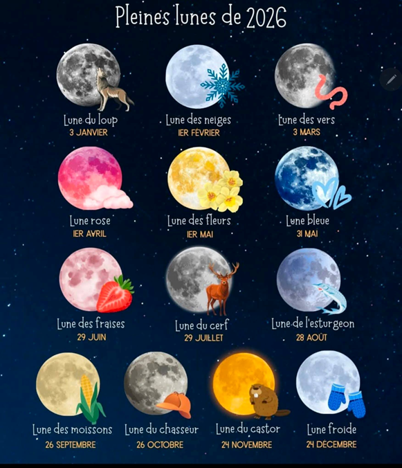 L’année 2026,13 Pleines Lune, la première « la Lune du Loup » le 3 janvier.