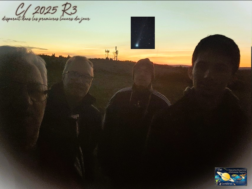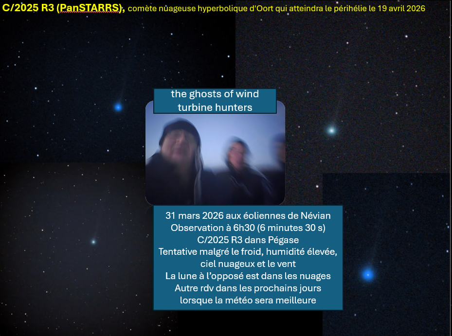 La comète ce matin, 31 mars / café et croissants dans des conditions non favorables mais le plaisir de voir la première comète d’avril
