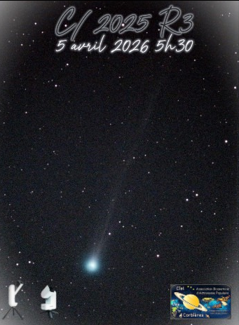 C/2025 R3 (PanSTARRS) est une comète nuageuse hyperbolique d’Oort qui atteindra le périhélie le 19 avril 2026, découverte le 8 septembre 2025 programme PanSTARRS.