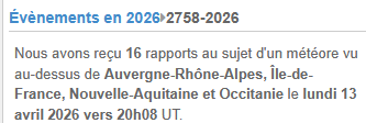 voici le rapport de ce lundi 13 avril 2026 – 22h10 https://vigie-ciel.imo.net/imo_view/event/2026/2758