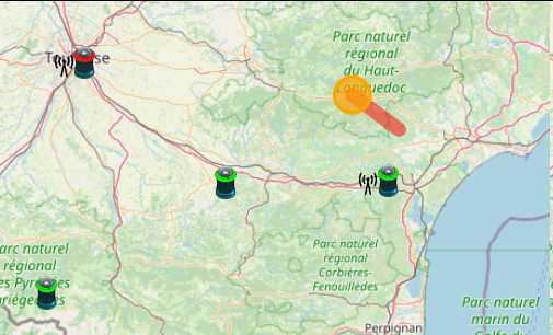 Jeudi 4 octobre 2018, en début de nuit (à 20h 24min 02sec TU), un bolide* bleu-vert très brillant a été observé et rapporté par près de 40 personnes depuis une large moitié Sud de la France, des Landes (64) aux Alpes-de-Haute-Provence (04).